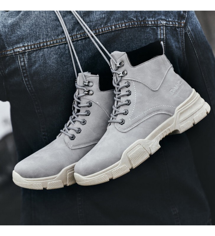 Men Stylish Microfiber Leather Lace Up Casual Ankle Boots